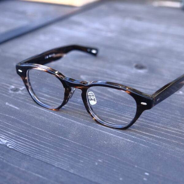 特に「DJUAL」は、セルロイドという伝統的な素材にこだわり、「機能美」を追求するブランドです。セルロイド特有の深い艶は、大人の男性の肌に自然な血色と高級感を与えてくれます。また、素材の弾性を活かした独自の構造により、重厚な見た目とは裏腹に、驚くほど吸い付くような掛け心地を実現しています。「良いものを長く、大切に使う」という役職者の姿勢を体現するような一本です。